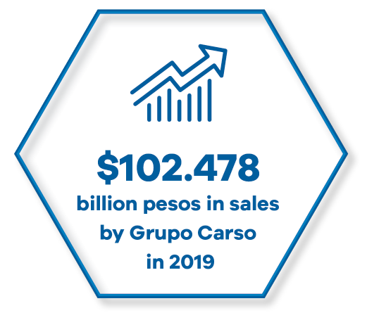 Grupo Condumex increased its sales by 2.6% in 2019, mainly from the greater volume of telecommunications cables for the domestic market and for exportation. It also had good performance for other industrial and electrical products for various industries. The first three quarters of the year saw an increase in the sale of harnesses and cables for the automotive industry. However, this division was indirectly affected by the General Motors (GM) strike in the United States in the months of September and October, which affected production in Mexico and reduced our sales towards the end of the year. But even in the face of these reverses, GM awarded us the “Supplier Quality Excellence Award” for our commitment to quality and service in our operations in Apaseo, Jaral de Progreso and San Felipe. The last-named plant has won this award for the last six consecutive years. We also continued to support innovation through the Carso Research and Development Center (CIDEC), introducing leading edge processes and products on a worldwide scale, such as the “MinLed” cable, with luminescent properties based on LEDS, that functions by electromagnetic induction to guarantee its operational continuity, and in which we hold a patent in the principal countries with a mining industry.