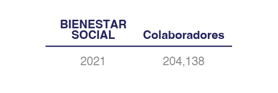 En el Programa de Bienestar Social, se trabajó en 3 aspectos fundamentales: Formación, Salud, y Cultura y Recreación que incluyeron actividades a través de video conferencia de manera masiva. En el 2021 se realizaron eventos donde se vieron beneficiados de los diferentes programas 204,138 personas, incluyendo colaboradores y familiares de colaboradores de Grupo Carso.